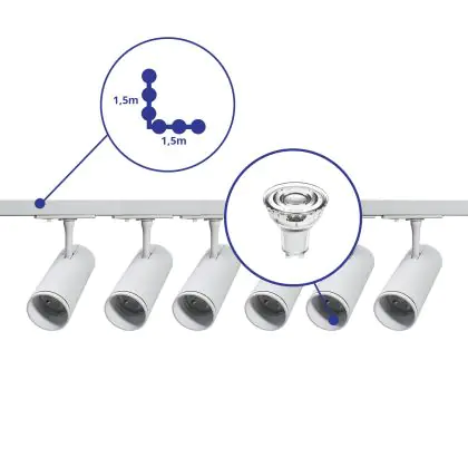 Bright Choice Komplettset 1-Phasen Rail L 1,5 x 1,5 Meter Weiß | incl. 6x Spot + GU10 2700K 3W Dimmbar + Abschlusskappe, Stromanschluss und L -Verbinder