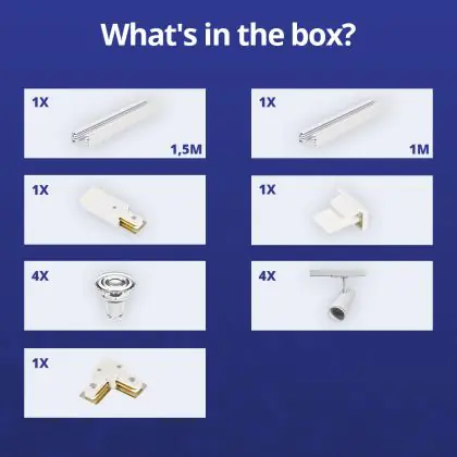 Bright Choice Komplettset 1-Phasen Rail L 1 x 1,5 Meter Weiß | incl. 4x Spot + GU10 2700K 3W Dimmbar + Abschlusskappe, Stromanschluss und L -Verbinder