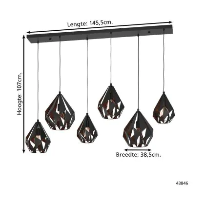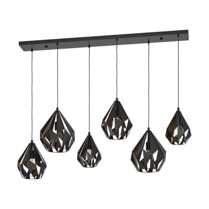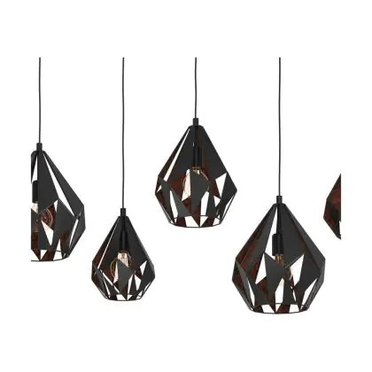 Eglo Pendelleuchte Carlton 1 Stahl Schwarz Bernstein | IP20 - Geeignet für 6x E27
