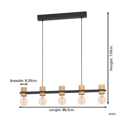 Eglo Pendelleuchte Chieveley Stahl Schwarz | IP20 - Geeignet für 5x E27