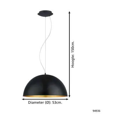 Eglo Pendelleuchte Gaeta 1 Stahl Schwarz Gold | IP20 - Geeignet für 1x E27