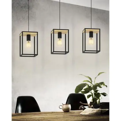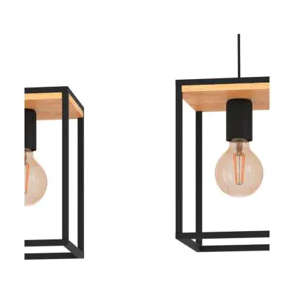 Eglo Pendelleuchte Libertad Stahl Holz Schwarz Braun | IP20 - Geeignet für 3x E27