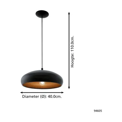 Eglo Pendelleuchte Moga 1 Stahl Schwarz Bernstein | IP20 - Geeignet für 1x E27