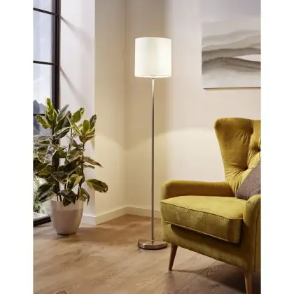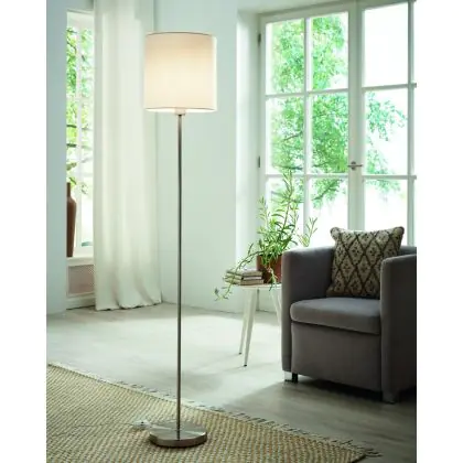 Eglo Stehlampe Pasteri Stahl Satin-Nickel Weiß | IP20 - Geeignet für 1x E27