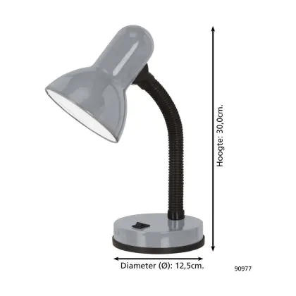 Eglo Tischlampe Basic 1 Stahl Silber | IP20 - Geeignet für 1x E27