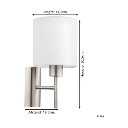 Eglo Wandleuchte Pasteri Stahl Satin-Nickel | IP20 - Geeignet für 1x E27