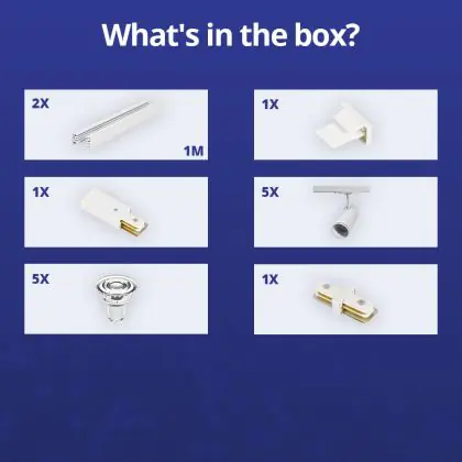 Komplettset 1-Phasen Rail 2 Meter Weiß | incl. 5x Spot + GU10 2700K 3W Dimmbar + Abschlusskappe, Stromanschluss und I-Verbinder
