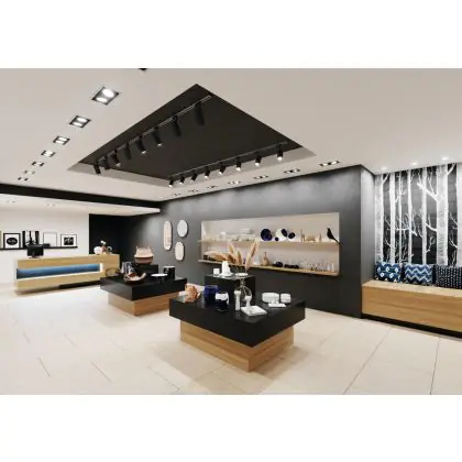 Eine Leuchte mit kippbarem Design ermöglicht es, das Licht gezielt auf ein Objekt oder eine Fläche zu richten. Dies spielt insbesondere in Geschäften eine wichtige Rolle, um z. B. eine neue Kollektion ins Rampenlicht zu setzen, oder in Galerien, um Kunstwerke hervorzuheben. Zudem kann es das Kaufverhalten oder die Wahrnehmung der Besucher beeinflussen.