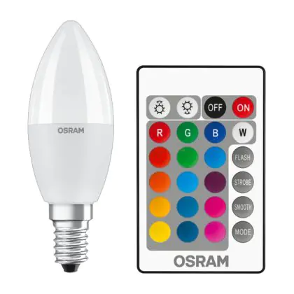 Osram LED E14 Kerze Matt 6W 470lm - 827 | RGBW - Dimmbar - Fernsteuerung - Ersatz Für 40W