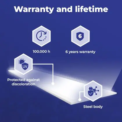 La durée de vie est une indication du nombre d'heures pendant lesquelles un produit dure. Cela concerne uniquement les heures pendant lesquelles le produit est réellement allumé. L'éclairage LED a une durée de vie bien plus longue que l'éclairage conventionnel. L'éclairage LED dure donc beaucoup plus longtemps. La durée d'utilisation réelle d'un produit dépend de son utilisation (quotidienne). |
