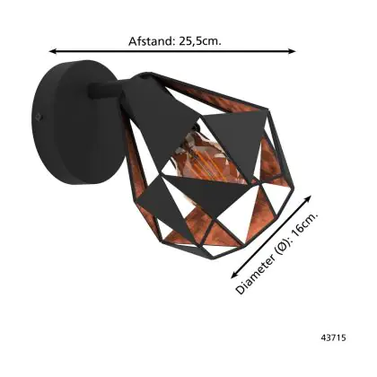 Eglo Applique Murale Carlton 7 Échantillon Noir Cuivre | IP20 - Convient pour 1x E27