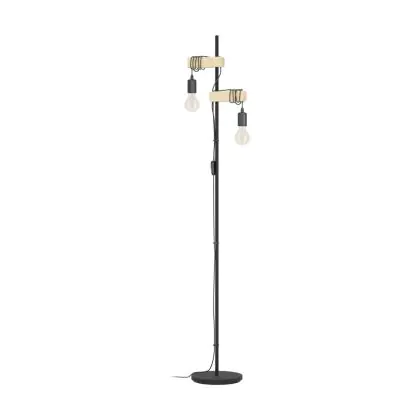 Eglo Lampadaires Salon Townshend Échantillon Bois Noir Brun | IP20 - Convient pour 2x E27