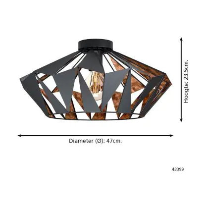 Eglo Plafonnier Carlton 6 Échantillon Noir Cuivre | IP20 - Convient pour 1x E27