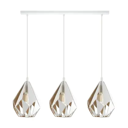 Eglo Suspension Luminaire Carlton 1 Échantillon Blanc Dorée | IP20 - Convient pour 3x E27