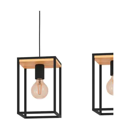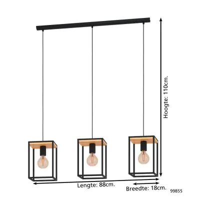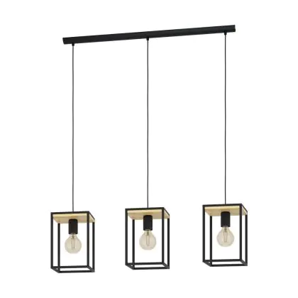 Eglo Suspension Luminaire Libertad Échantillon Bois Noir Brun | IP20 - Convient pour 3x E27