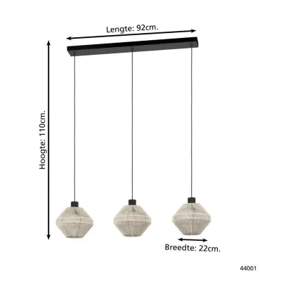 Eglo Suspension Luminaire Midsumer Échantillon Noir | IP20 - Convient pour 3x E27