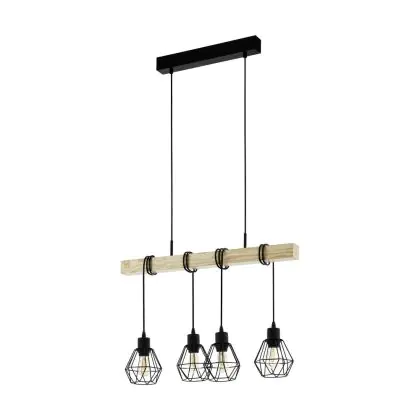 Eglo Suspension Luminaire Townshend 5 Échantillon Bois Noir | IP20 - Convient pour 4x E27