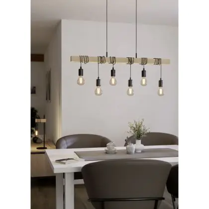 Eglo Suspension Luminaire Townshend Échantillon Bois Noir Brun | IP20 - Convient pour 6x E27