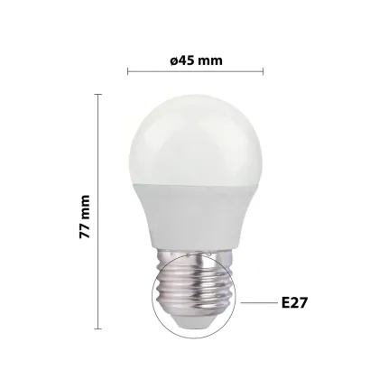 Cette ampoule LED E27 Boule Dépolie 2.5W 250lm - 827 | Remplacement 25W avec son efficacité lumineuse de lumen par watt vous permettra de profiter d’un éclairage de qualité. Avec sa durée de vie de 15000 heures, vous n’aurez pas à vous soucier de son remplacement avant quelques années.