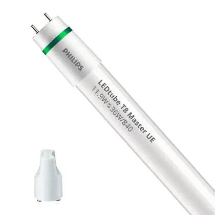 Ce tube LED Philips Tube LED T8 MASTER (EM/Direct 230V) Ultra Efficiency 11.9W 2500lm - 840 Blanc Froid | 120cm - Équivalent 36W est l’un des produits les plus éconergétiques en remplacement des tubes T8 classiques. Avec ce tube LED vous êtes donc assuré de sa qualité. Avec une puissance de seulement 11.9 W, ce tube LED a la même intensité lumineuse qu’un tube classique qui consomme 36 W. P>